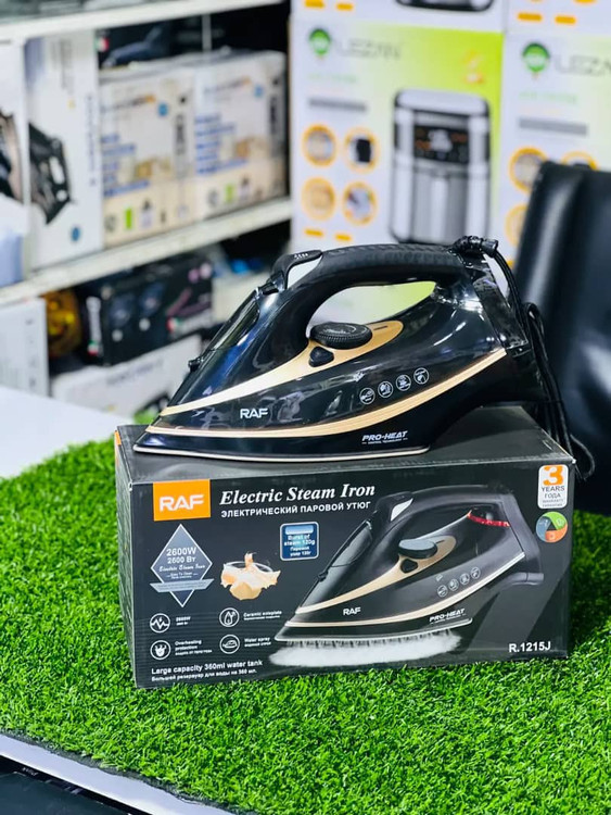 اتو بخار های راف ازجمله محصولات فوق العاده و محبوب این برند می باشند. اتو بخار RAF مدل R.1215J با قیمت مناسبش نیز از کیفیت بالایی بهره مند است. این اتو بخار از کفه سرامیکی بهره می برد که بسیار کار آمد است.